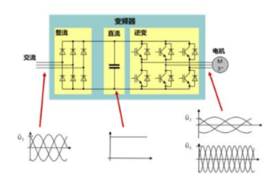 變頻技術(shù)就是把工頻交流電通過整流電路整流濾波成穩(wěn)定的直流電,然后再通過逆變電路逆變成頻率可調(diào)節(jié)的交流電,最后輸出到變頻電機(jī)中。在變頻空壓機(jī)應(yīng)用中,當(dāng)正常工況用氣量大時(shí),電機(jī)輸入頻率高轉(zhuǎn)速高,產(chǎn)氣量高;午間用氣量小時(shí),電機(jī)輸入頻率低轉(zhuǎn)速低,產(chǎn)氣量小。