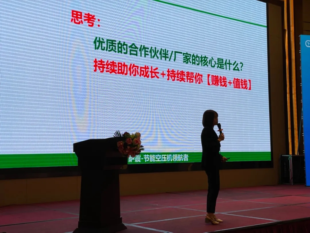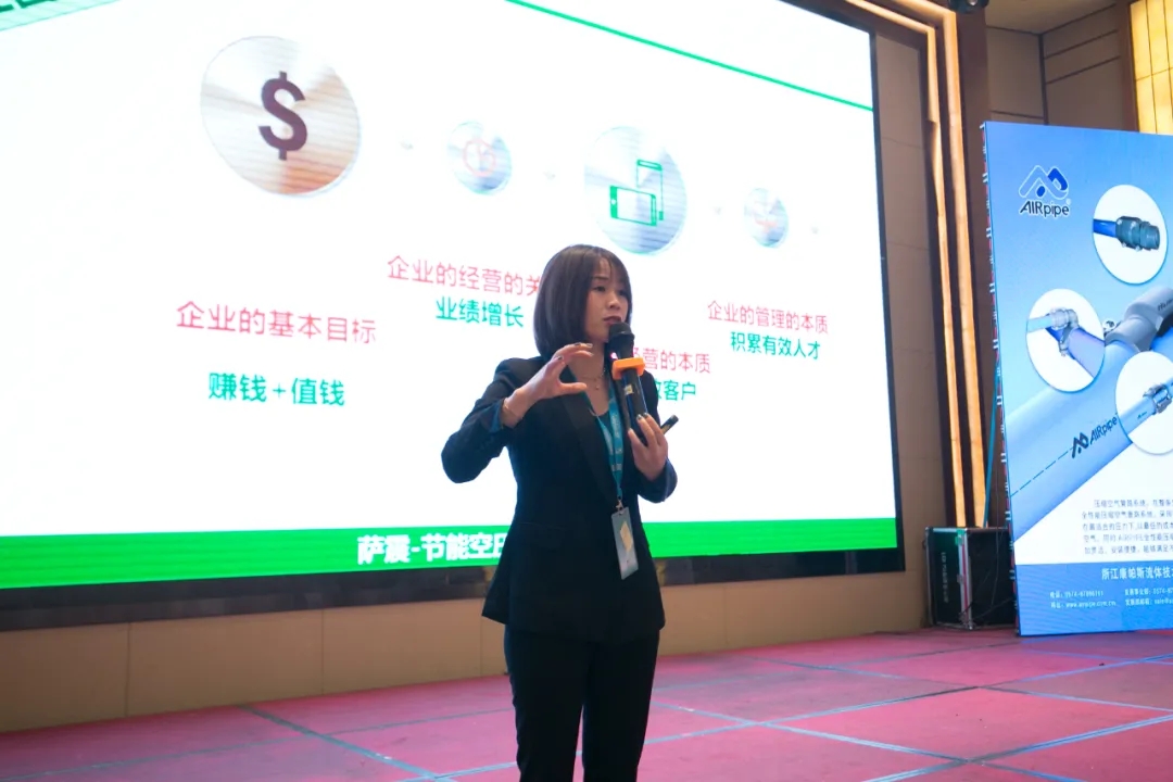 緊接著,各廠商依次向參會(huì)嘉賓分享各自的技術(shù)和產(chǎn)品,薩震壓縮機(jī)(上海)有限公司的南區(qū)副總?cè)A芬珍在PPT中,從企業(yè)文化、團(tuán)隊(duì)管理、產(chǎn)品特性等方面以飽滿的精神做出了精彩的分享。