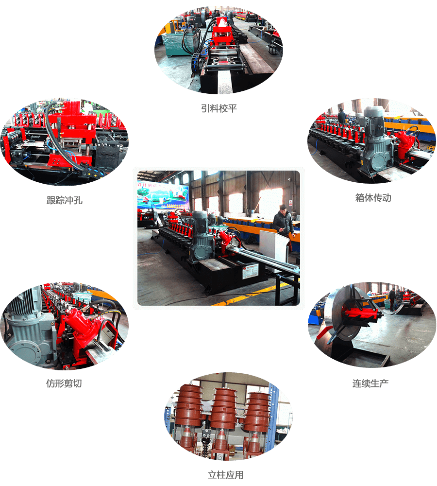 開卷→整平→機(jī)械跟蹤沖孔→輥壓成型→切斷翻邊→出料