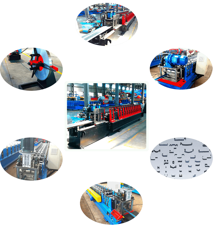 開(kāi)卷—導(dǎo)向進(jìn)料—輥壓成型—沖孔切斷—托板出料